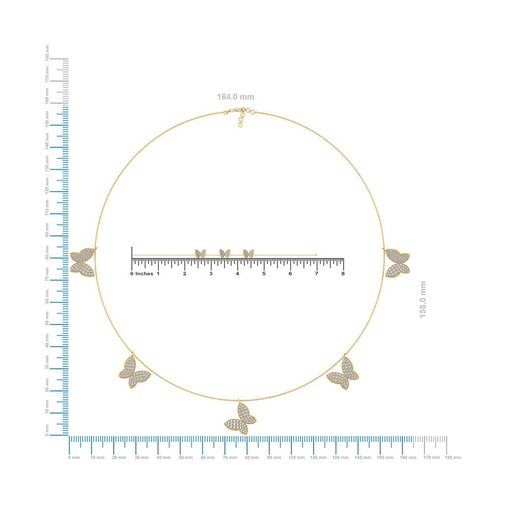 14K Yellow Gold Butterfly Necklace Bracelet Set 1-7/8 Cttw