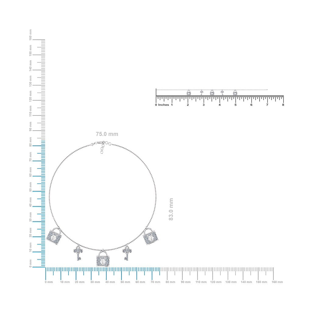 14K White Gold Lock & Key Necklace Bracelet Jewelry Set 5/8 Cttw