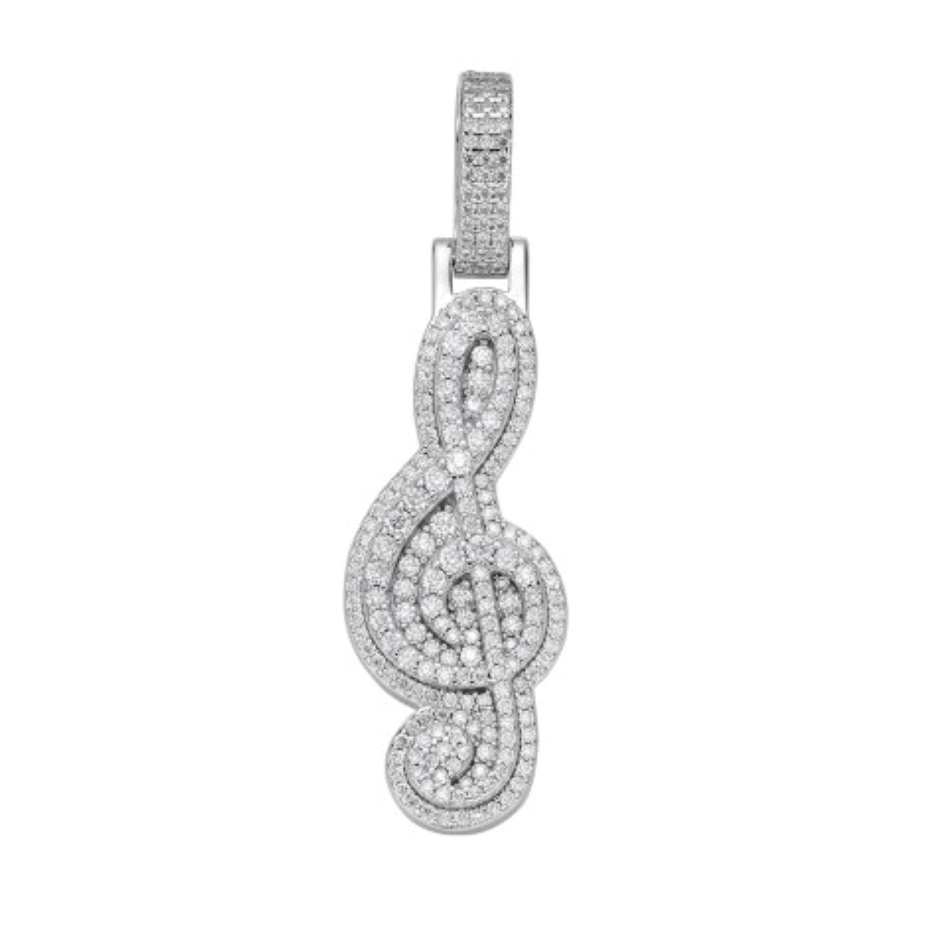S.Silver Moissanite Music Note Symbol Pendant 1-5/8 Cttw RP