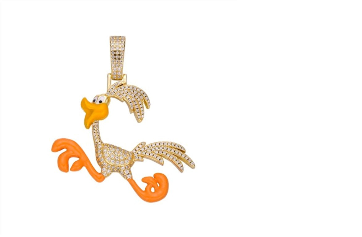 S.Silver Moissanite Enamel Bird Animal Pendant GP 7/8 Cttw