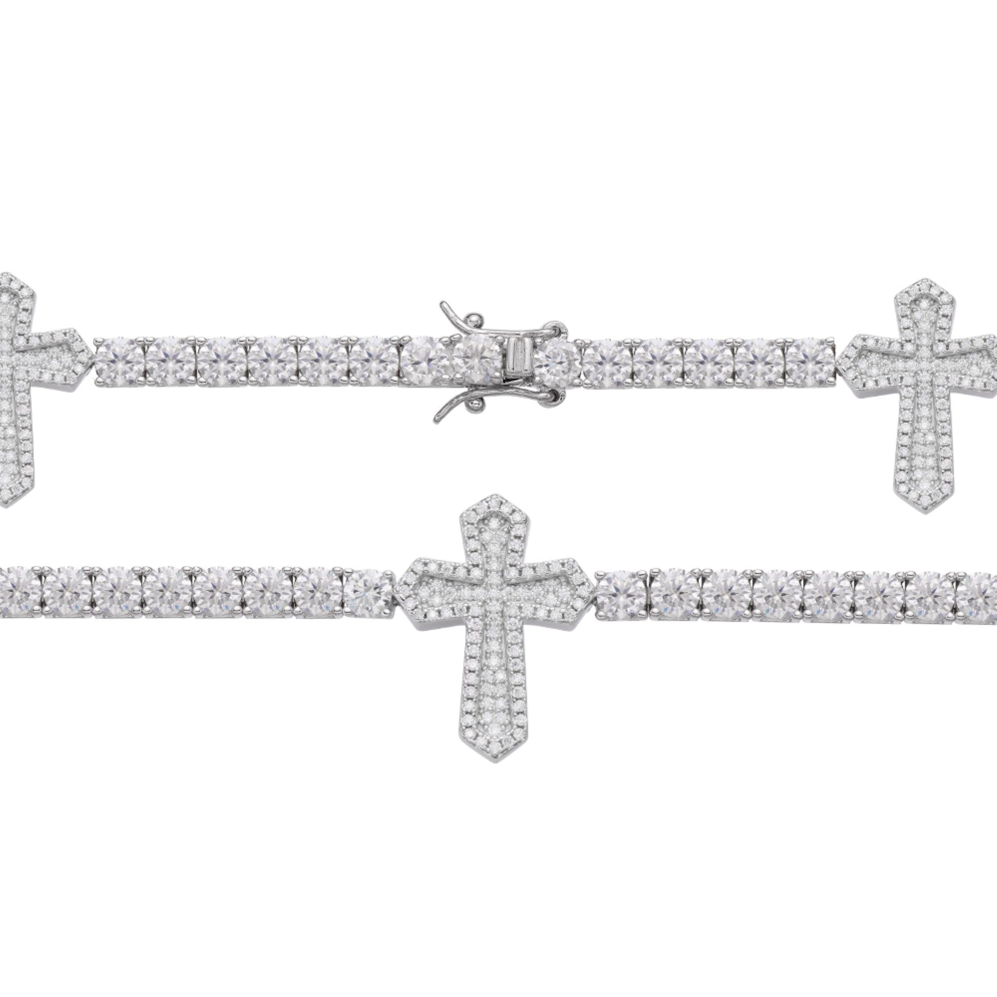 S.Silver Round Moissanite Cross Religious Bracelet 8.5 Inch RP 12-1/3 Cttw
