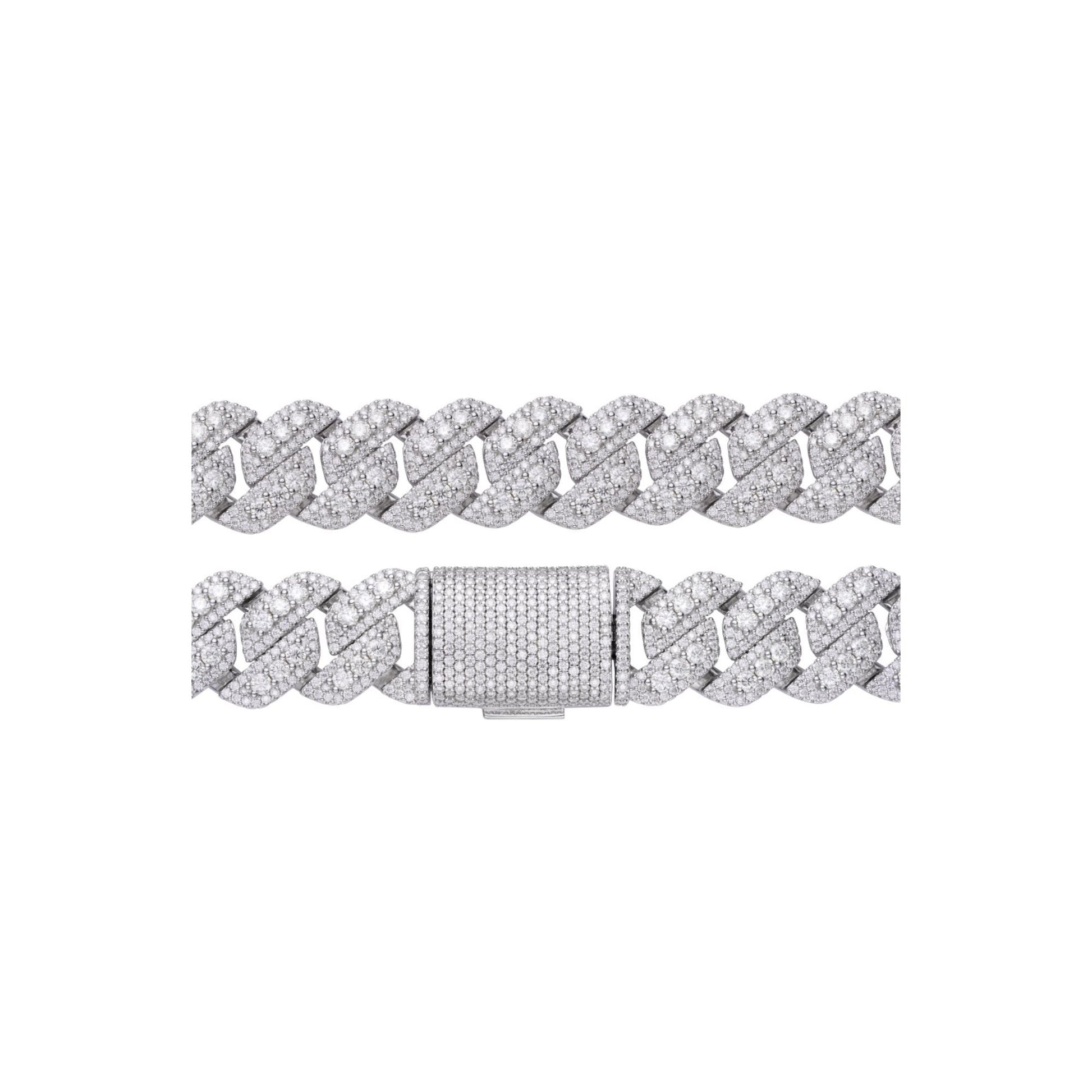 S.Silver Round Big Stone in Center Surrounded with Small Stones 20mm Moissanite Cuban Chain 22Inch Necklace RP 55-5/8 Cttw