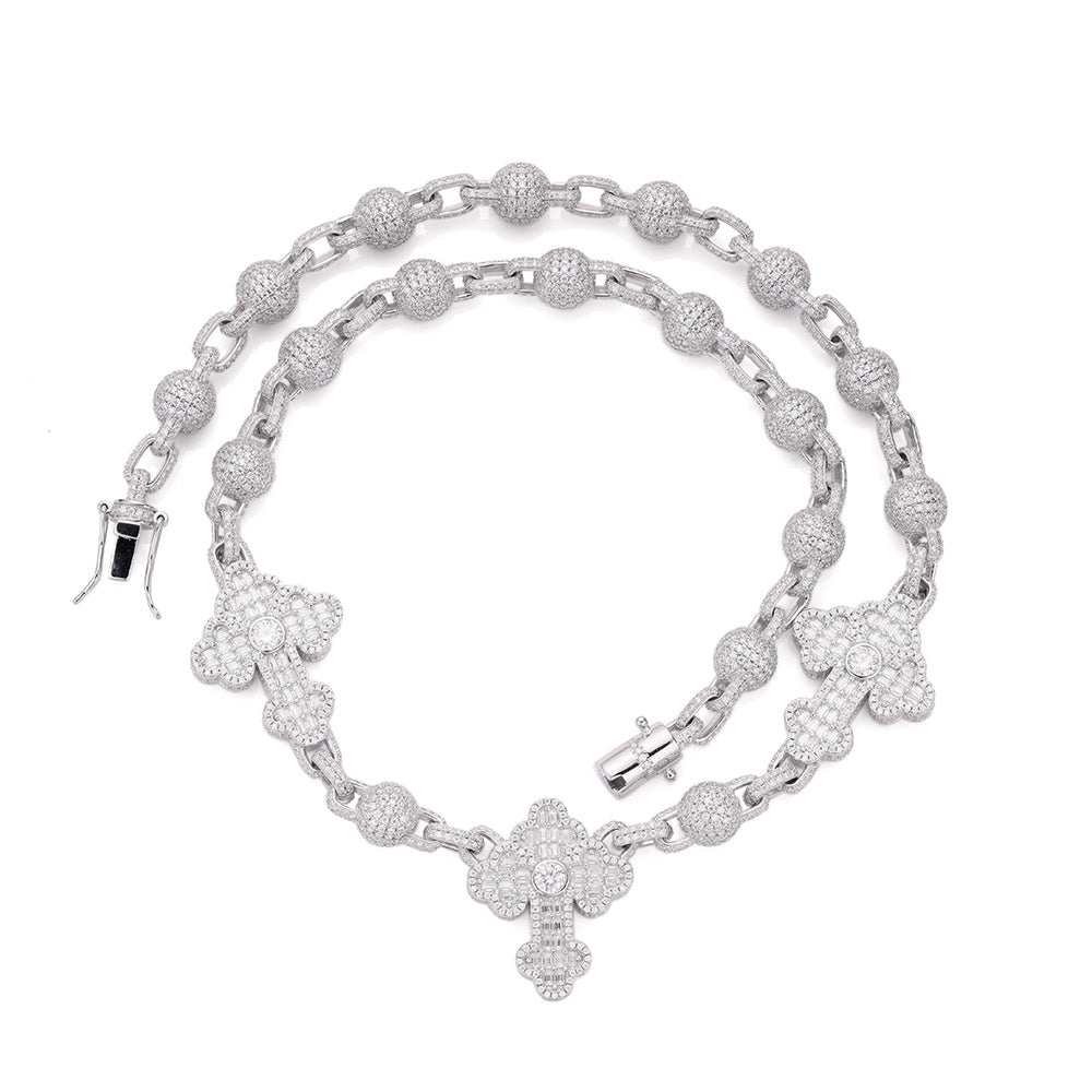 S.Silver Round Baguette Moissanite Cross Religious 22 Inch Necklace RP 38-1/3 Cttw