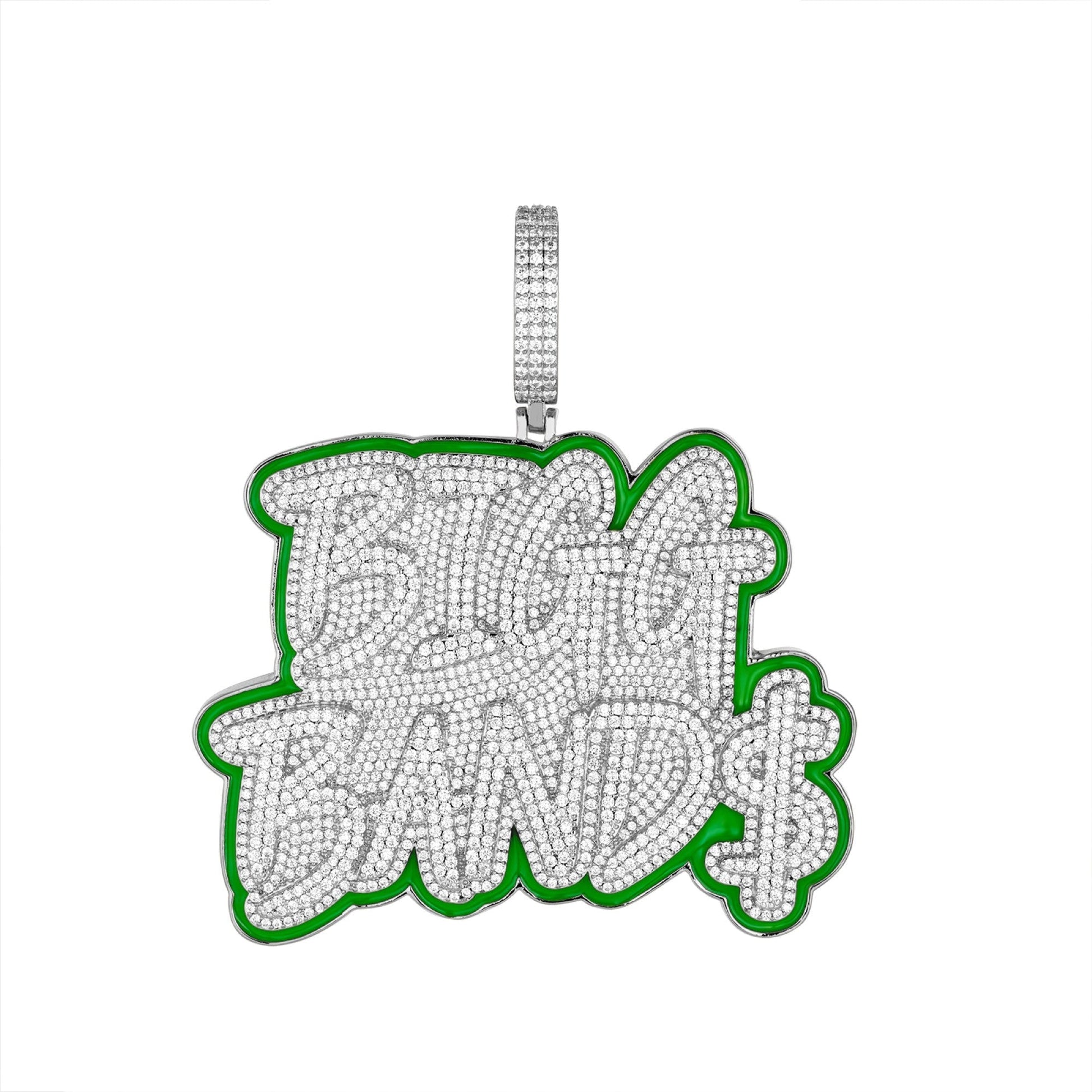S.Silver Round Moissanite Bigg Band Word Pendant RP 8-1/2 Cttw