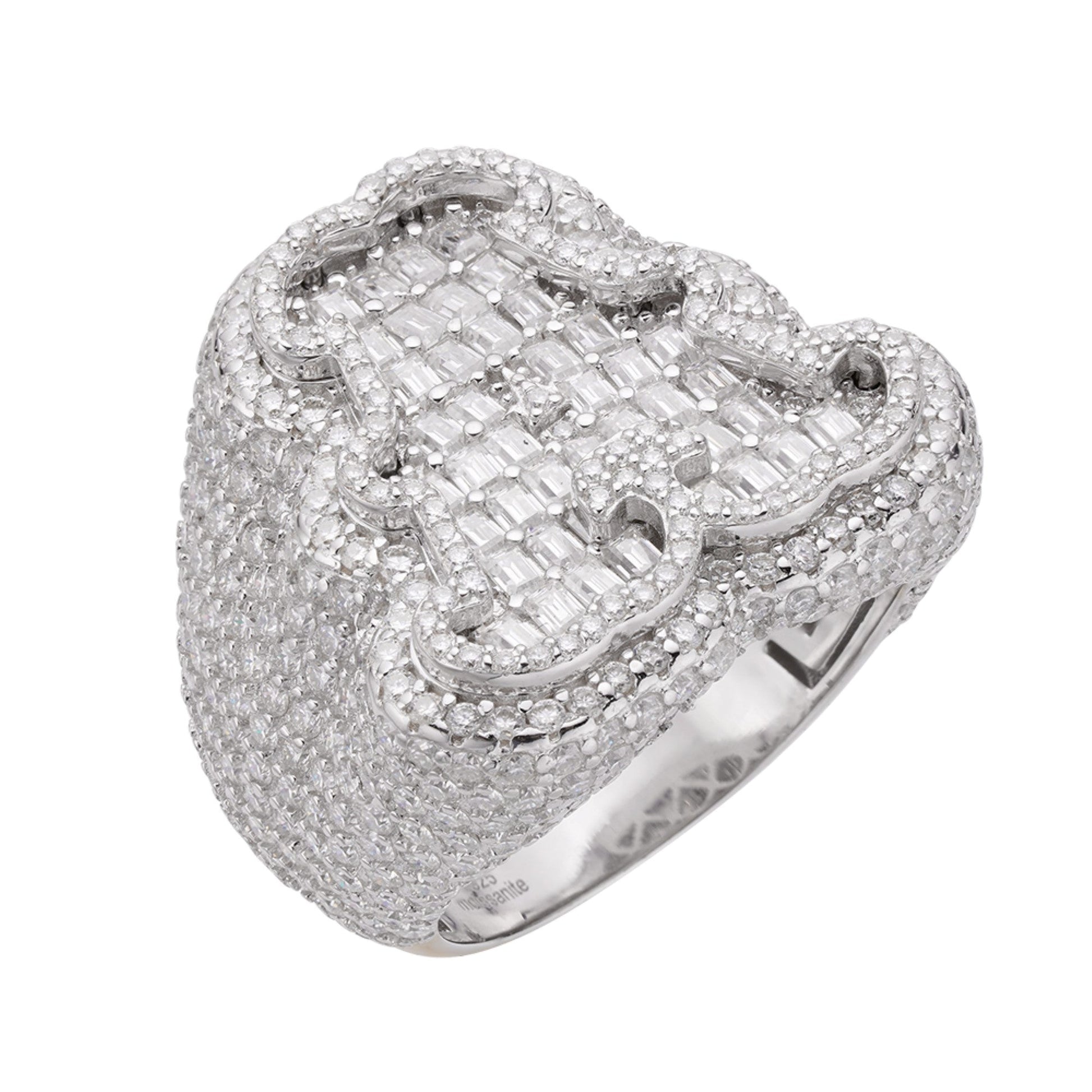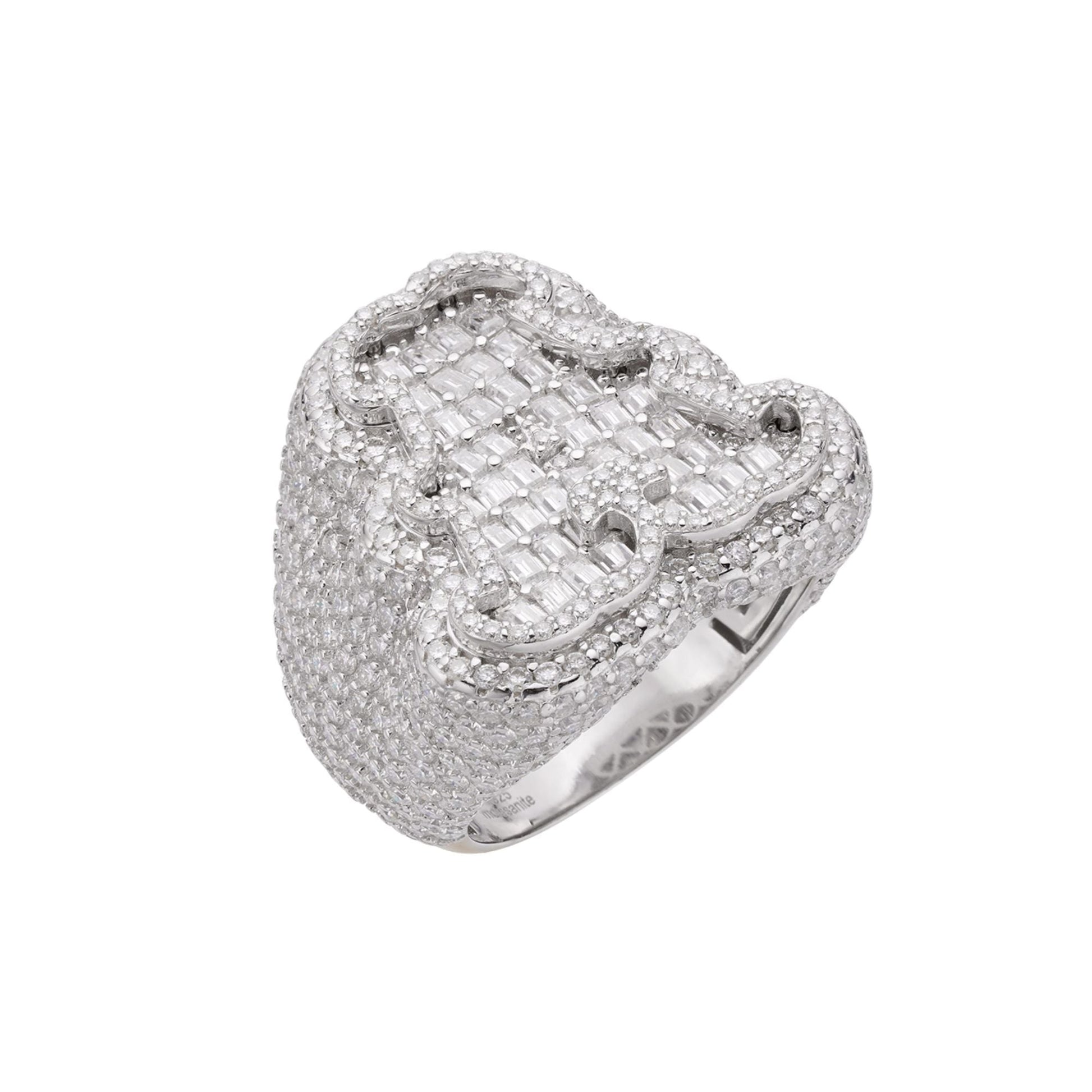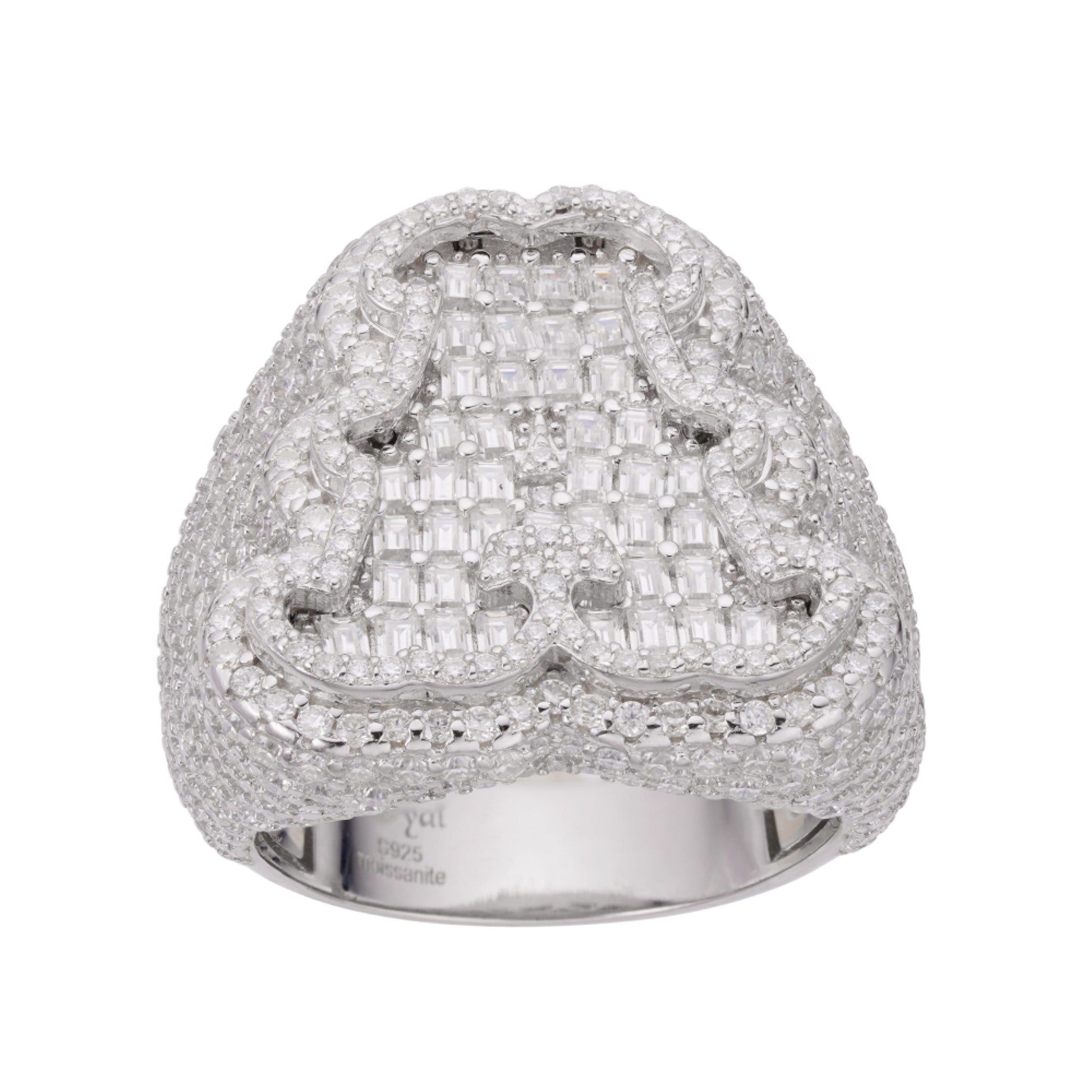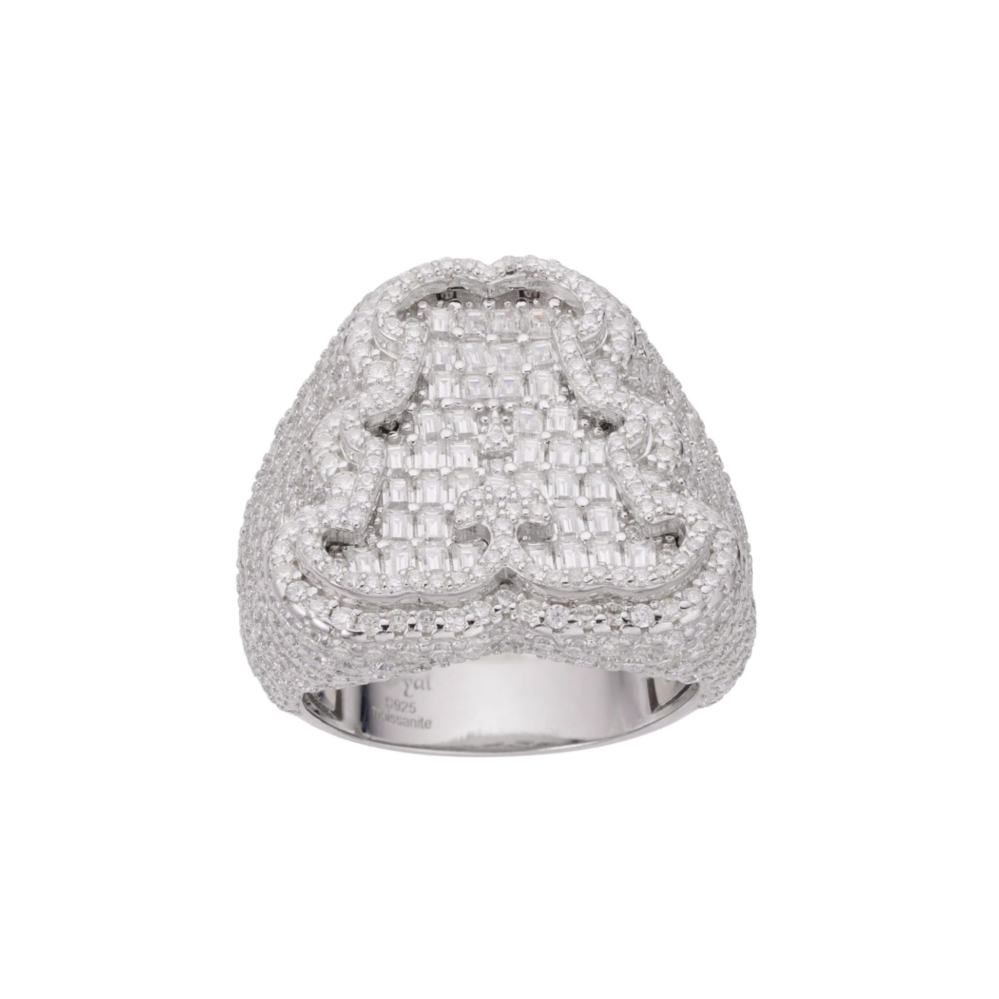 S.Silver Round Baguette Moissanite Albhabet A letter Initial SZ 10 Mens Ring RP 7-5/8 Cttw