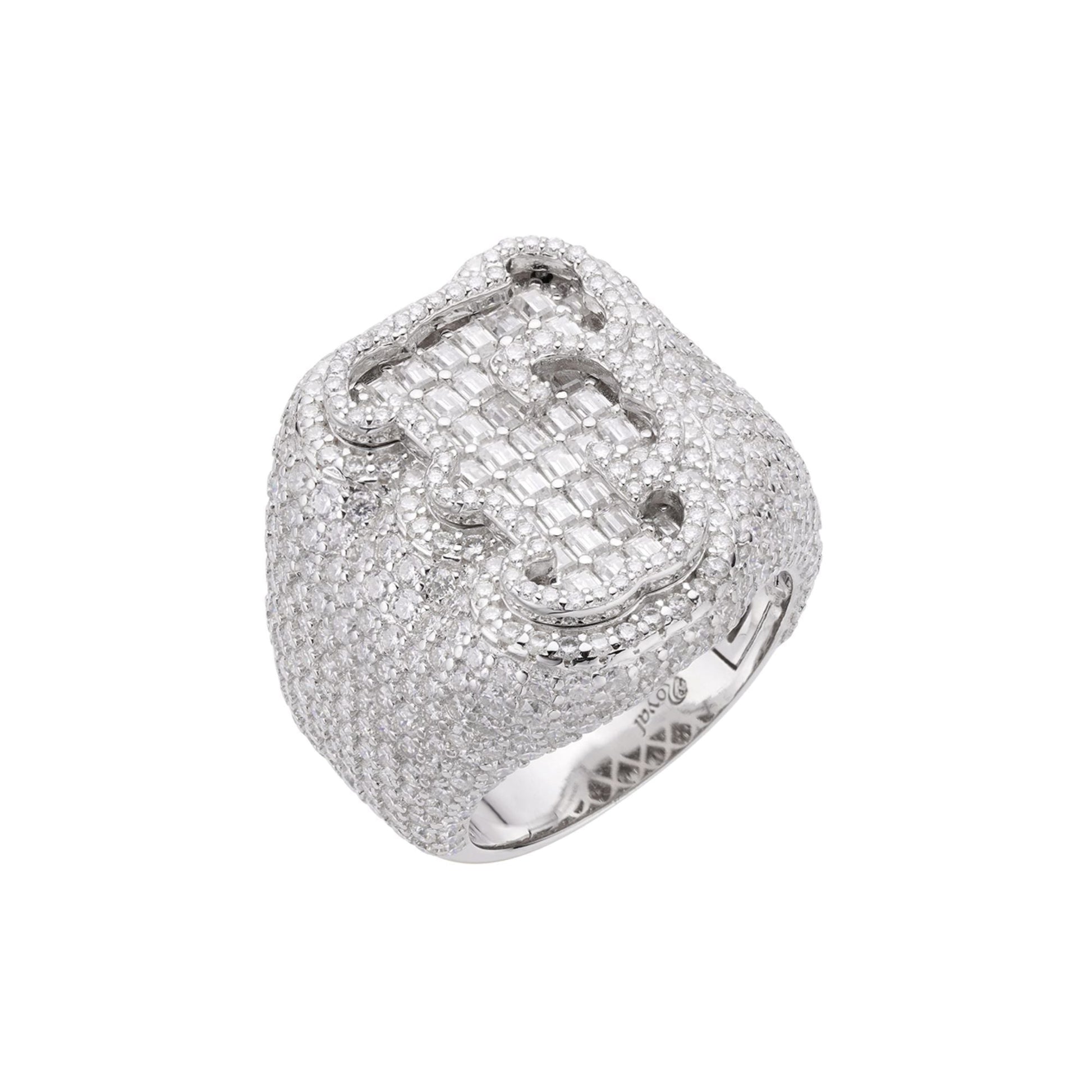 S.Silver Round Baugette Moissanite Albhabet F letter Initial SZ 10 Mens Ring RP 7-1/4 Cttw