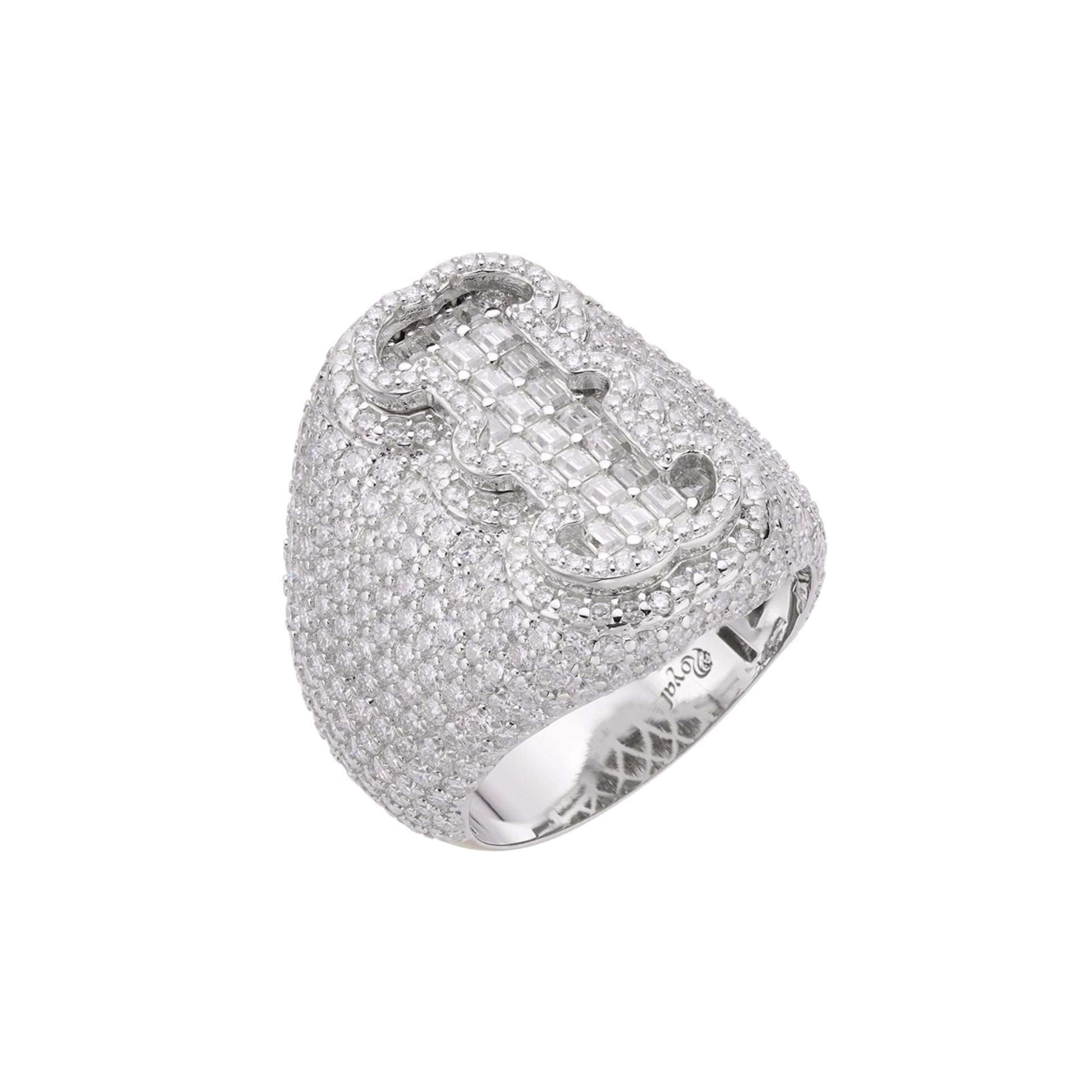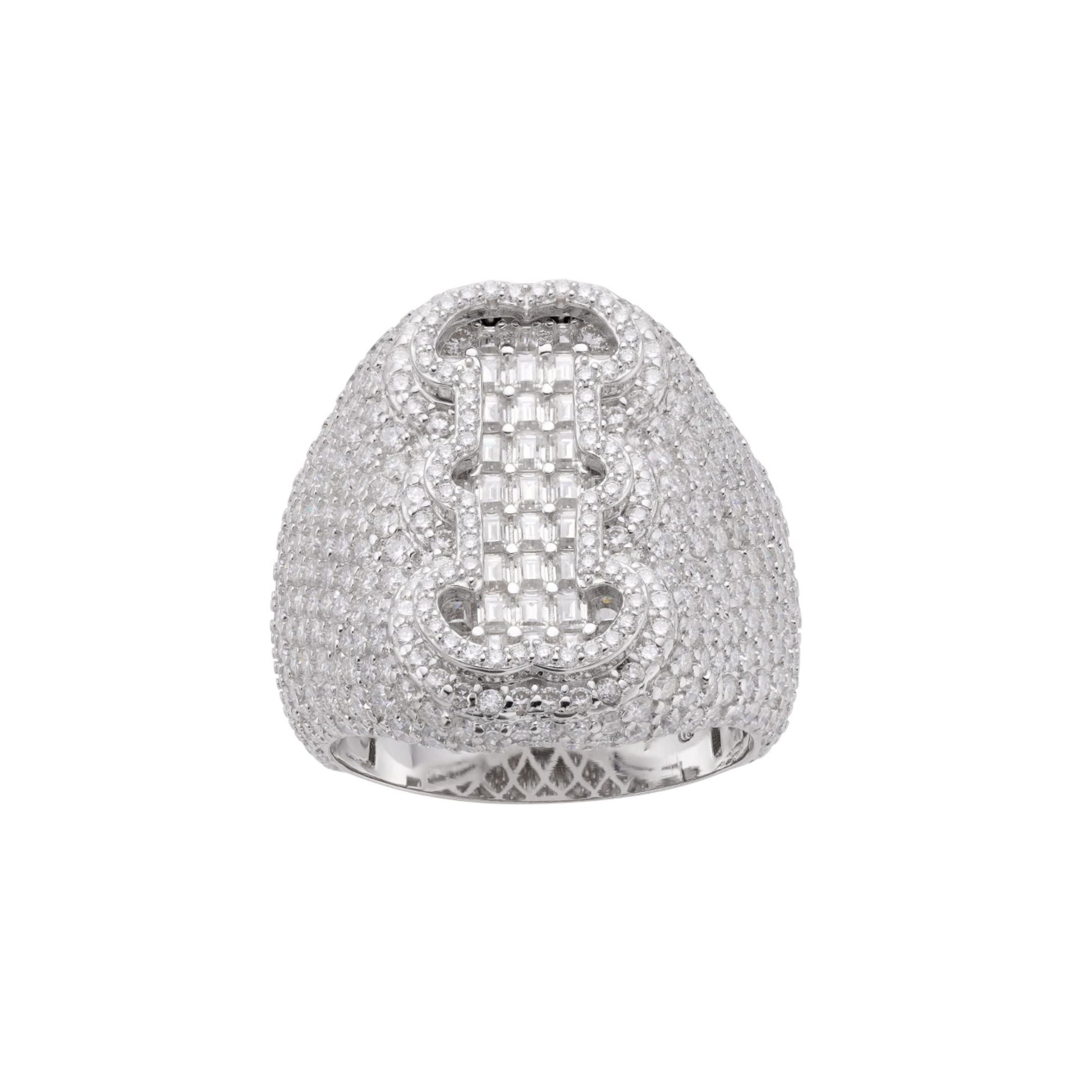 S.Silver Round Baugette Moissanite Albhabet I letter Initial SZ 10 Mens Ring RP 6-1/2 Cttw