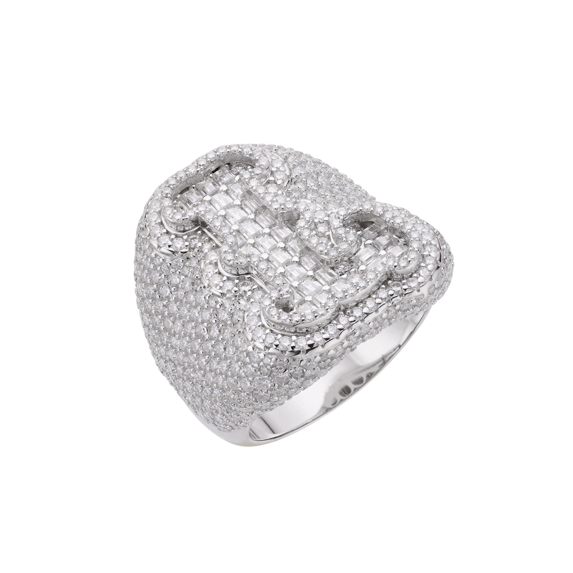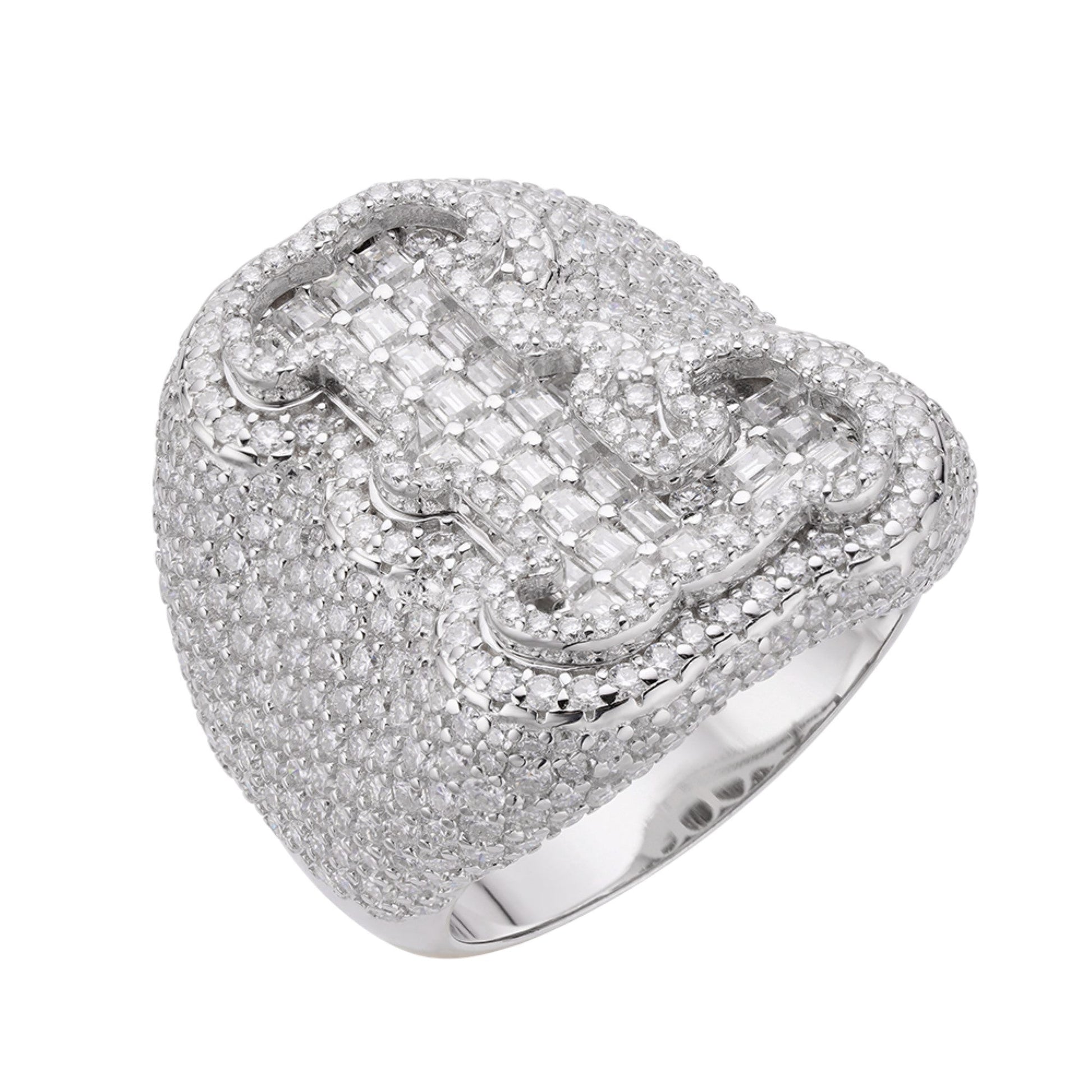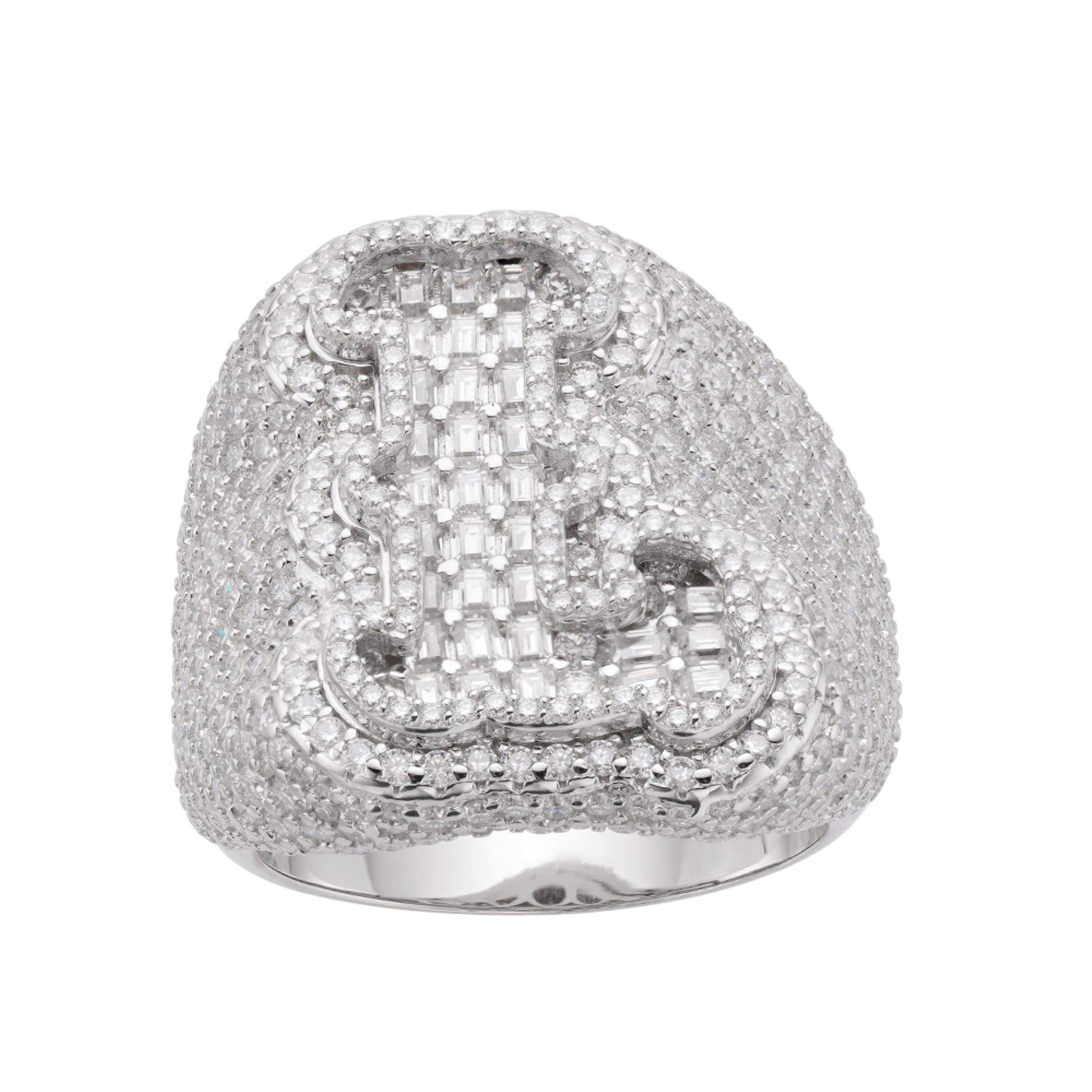 S.Silver Round Baugette Moissanite Albhabet L letter Initial SZ 10 Mens Ring RP 6-5/8 Cttw