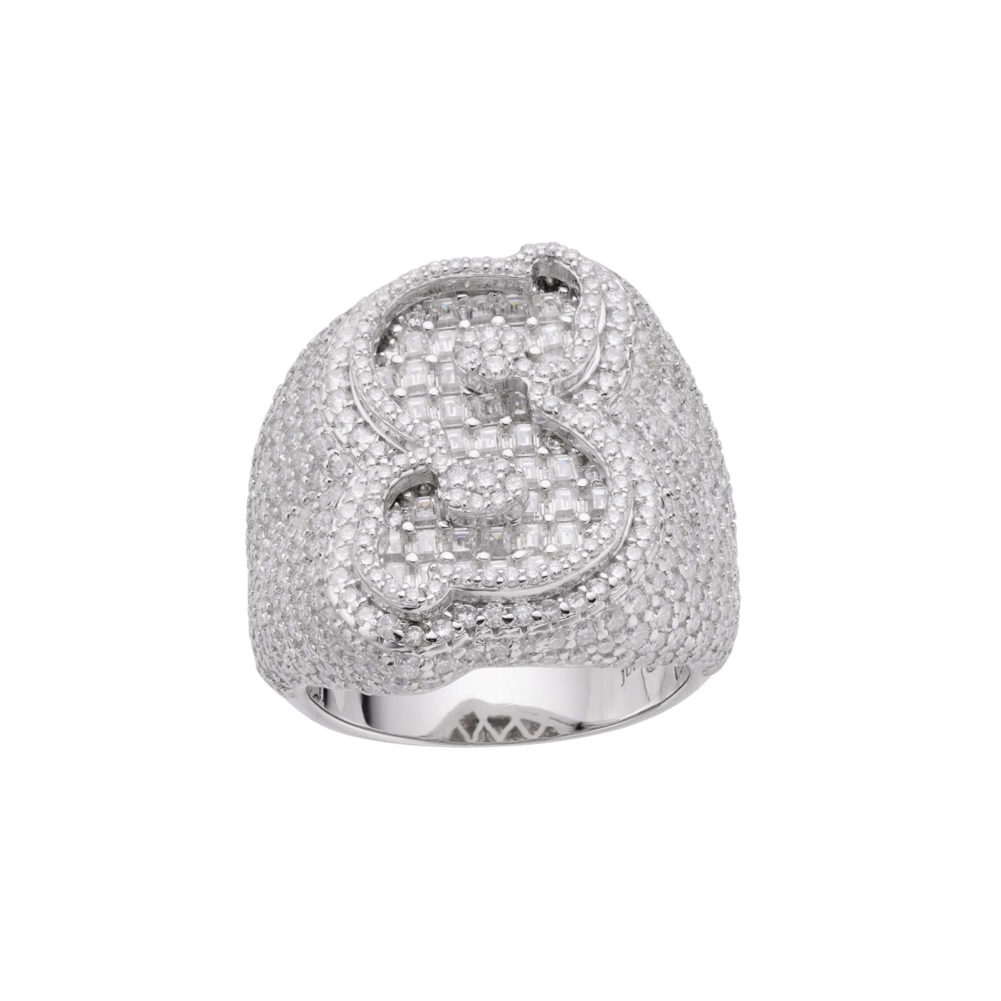 S.Silver Round Baugette Moissanite Albhabet S letter Initial SZ 10 Mens Ring RP 7-3/8 Cttw