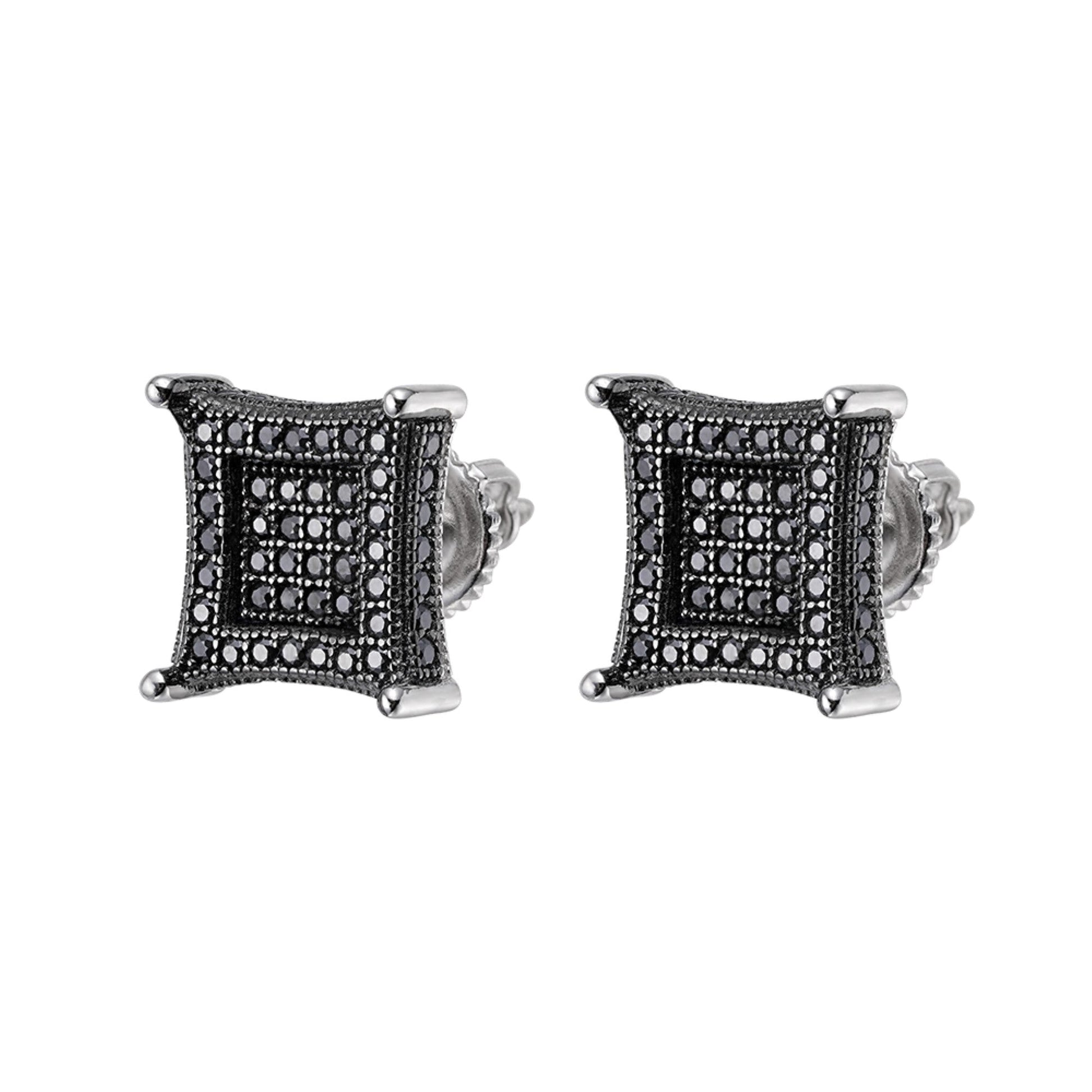 S.Silver Round Black Moissanite Square Shape Stud Earrings BP+RP 7/8 Cttw