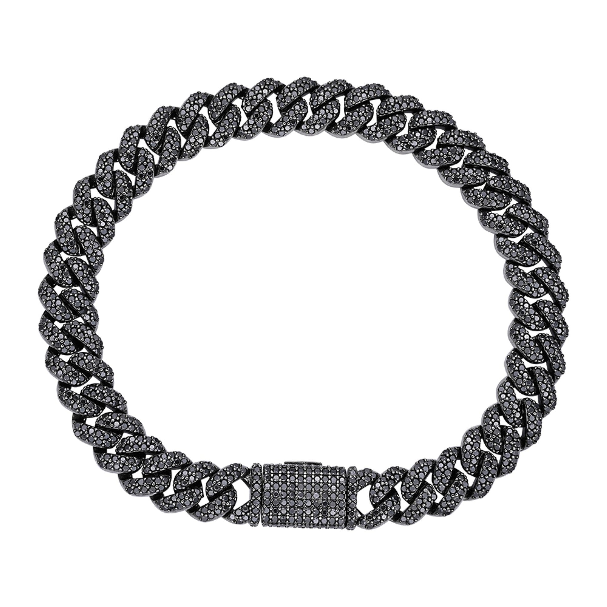 S.Silver 8mm Round Black Moissanite Miami Cuban 8 Inch Mens Bracelet BP+BP 5 Cttw