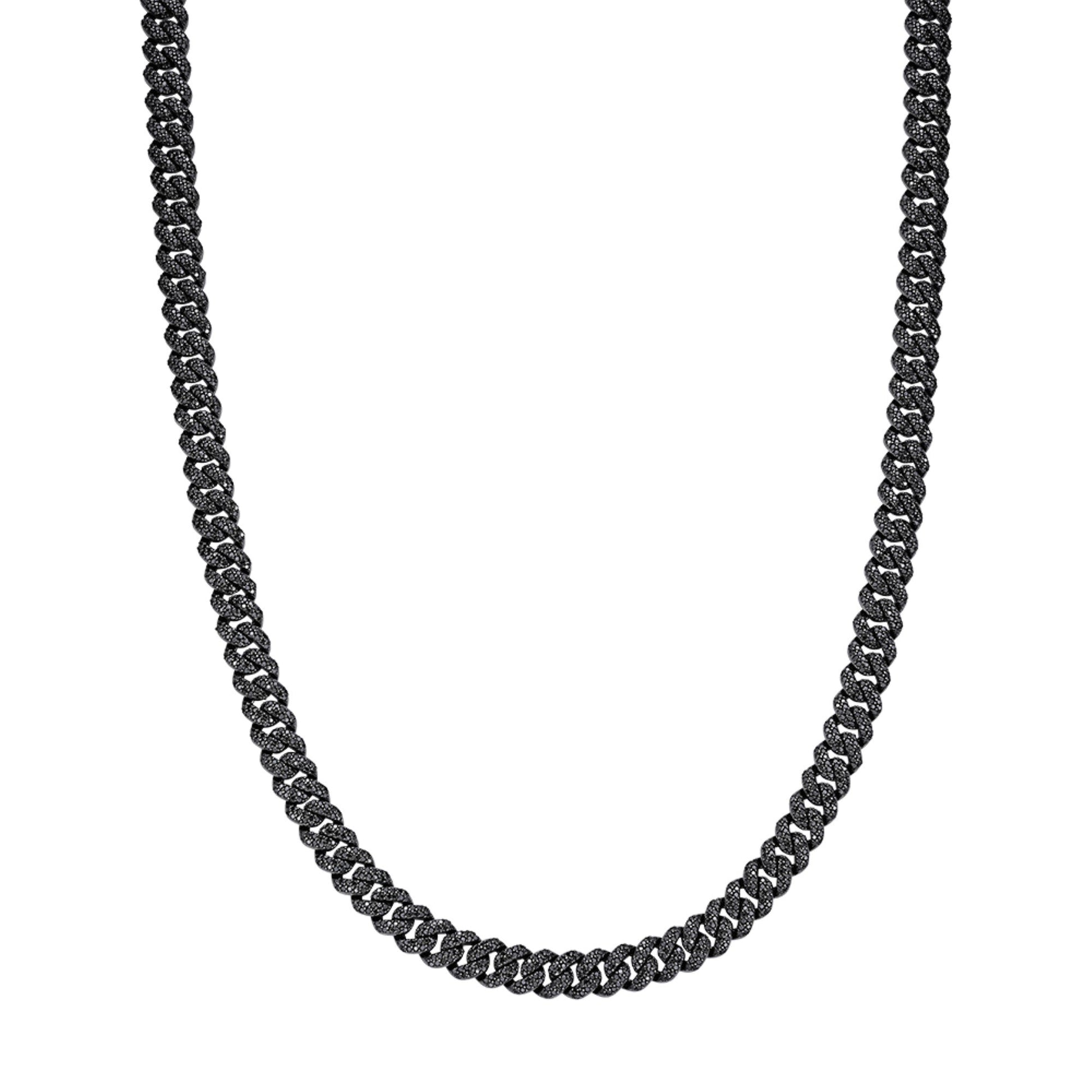 S.Silver 8mm Round Black Moissanite Miami Cuban Chain 22 Inch Mens Necklace BP+BP 13-3/4 Cttw