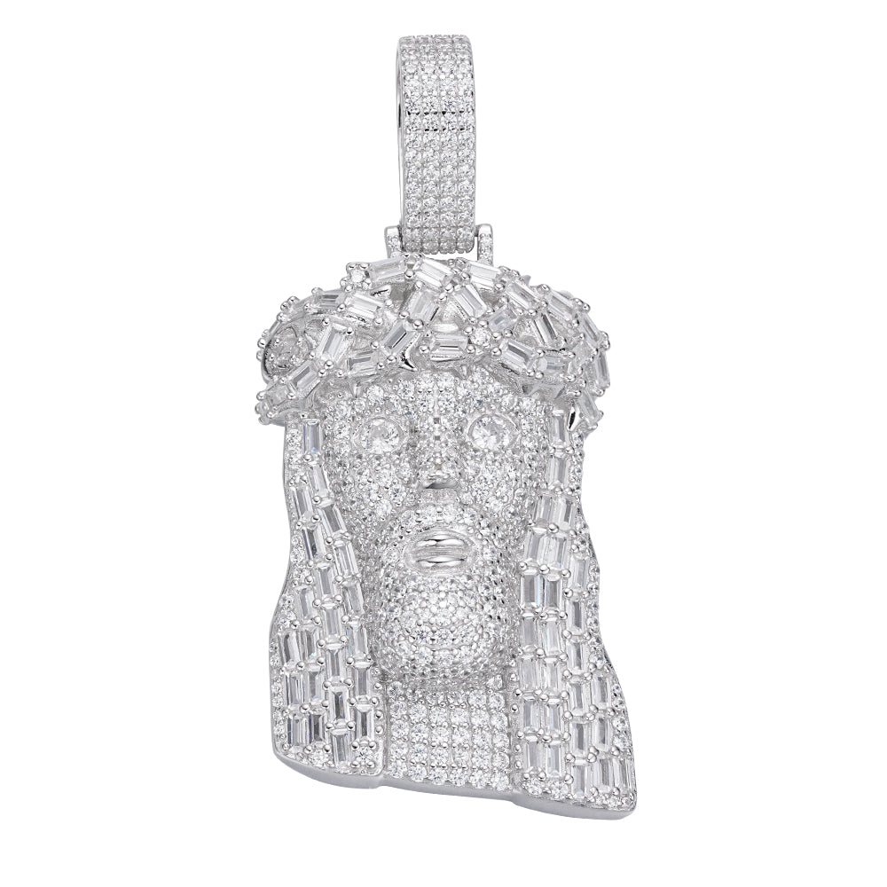 S.Silver 45mm Round Baguette Moissanite Jesus Face Religious Pendant RP 8-7/8 Cttw