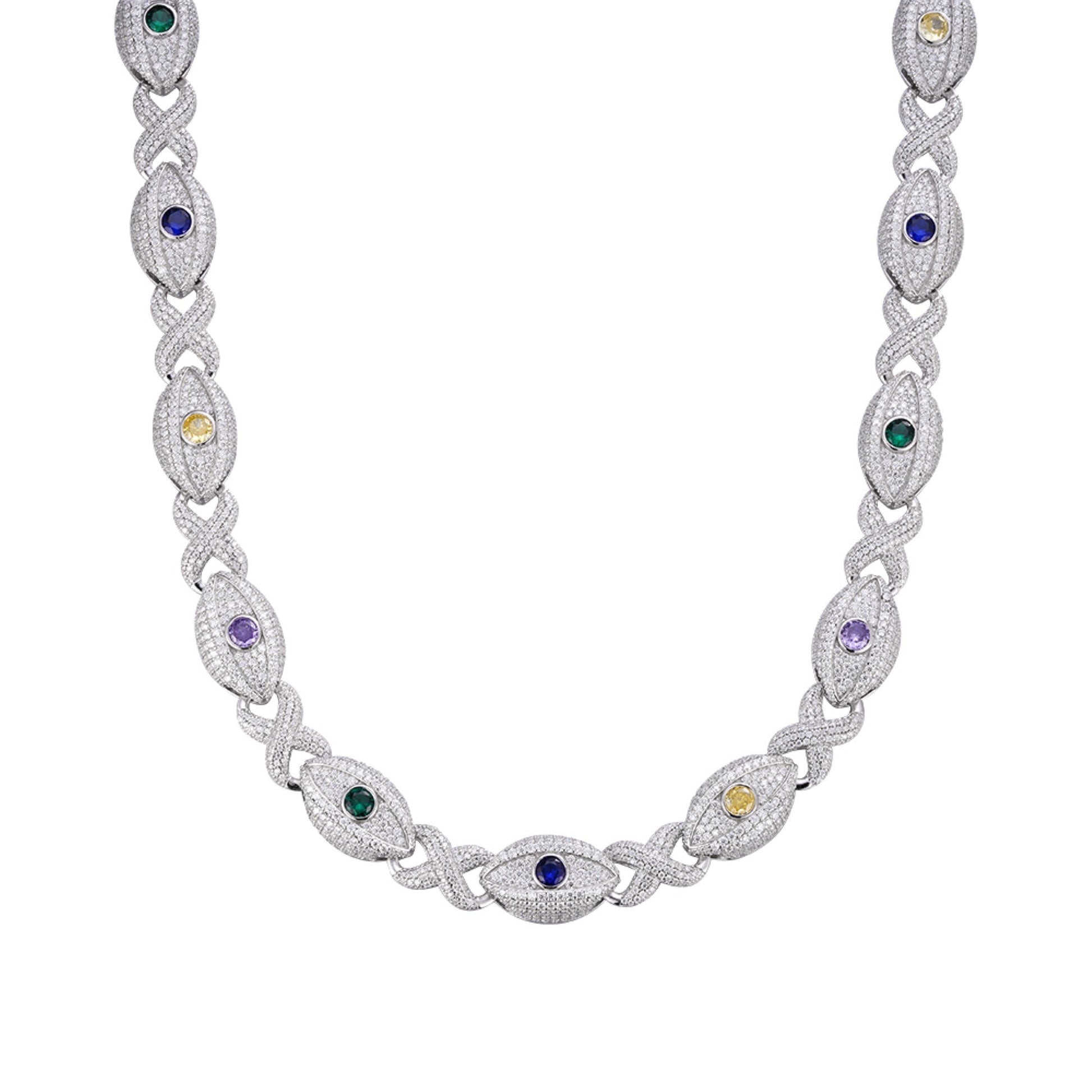 S.Silver Round Moissanite Infinity Eye 22 Inch Designer Necklace Multicolor 38-1/2 Cttw