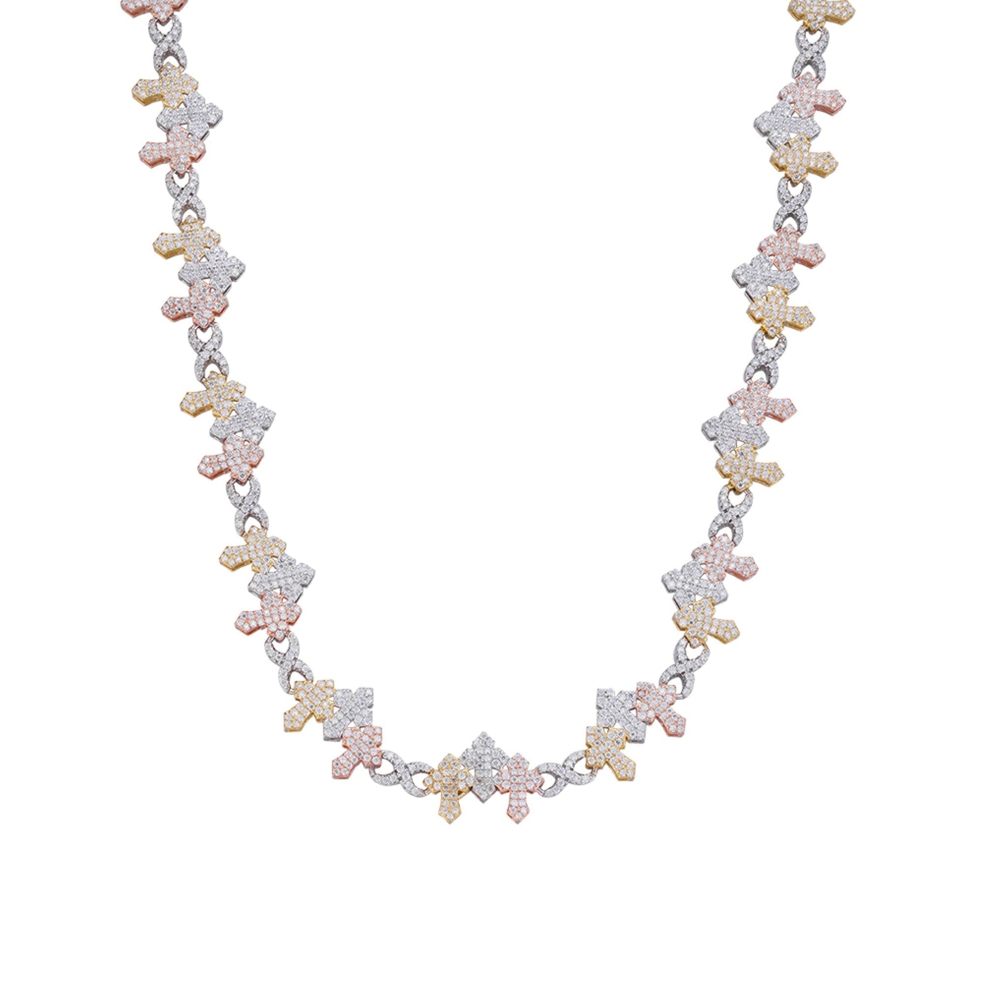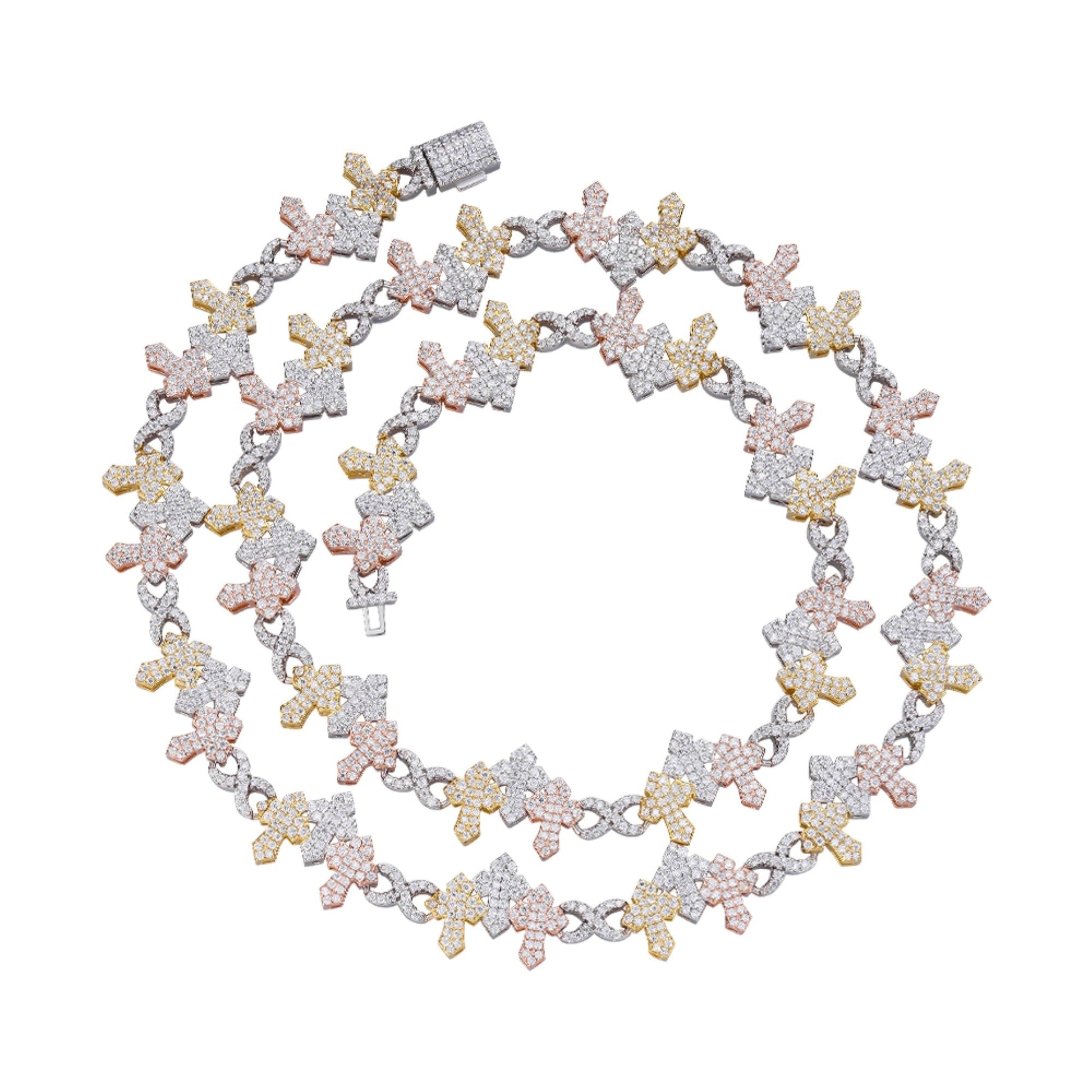 S.Silver Round Moissanite Infinity 3 Cross 22 Inch Religious Necklace RP+GP+PP 9-5/8 Cttw