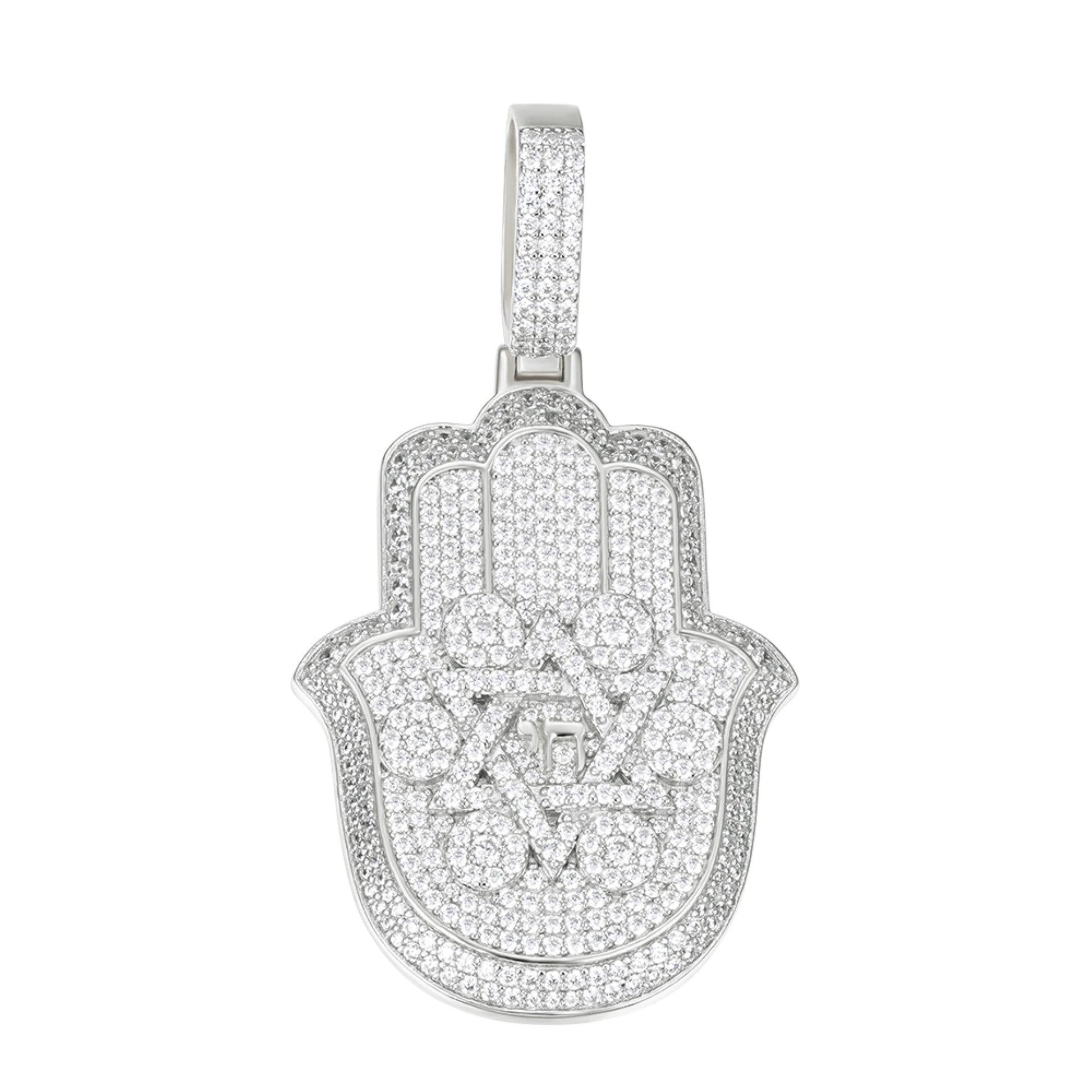 S.Silver Round Moissanite Hamza Hand Religious Pendant RP 3-5/8 Cttw