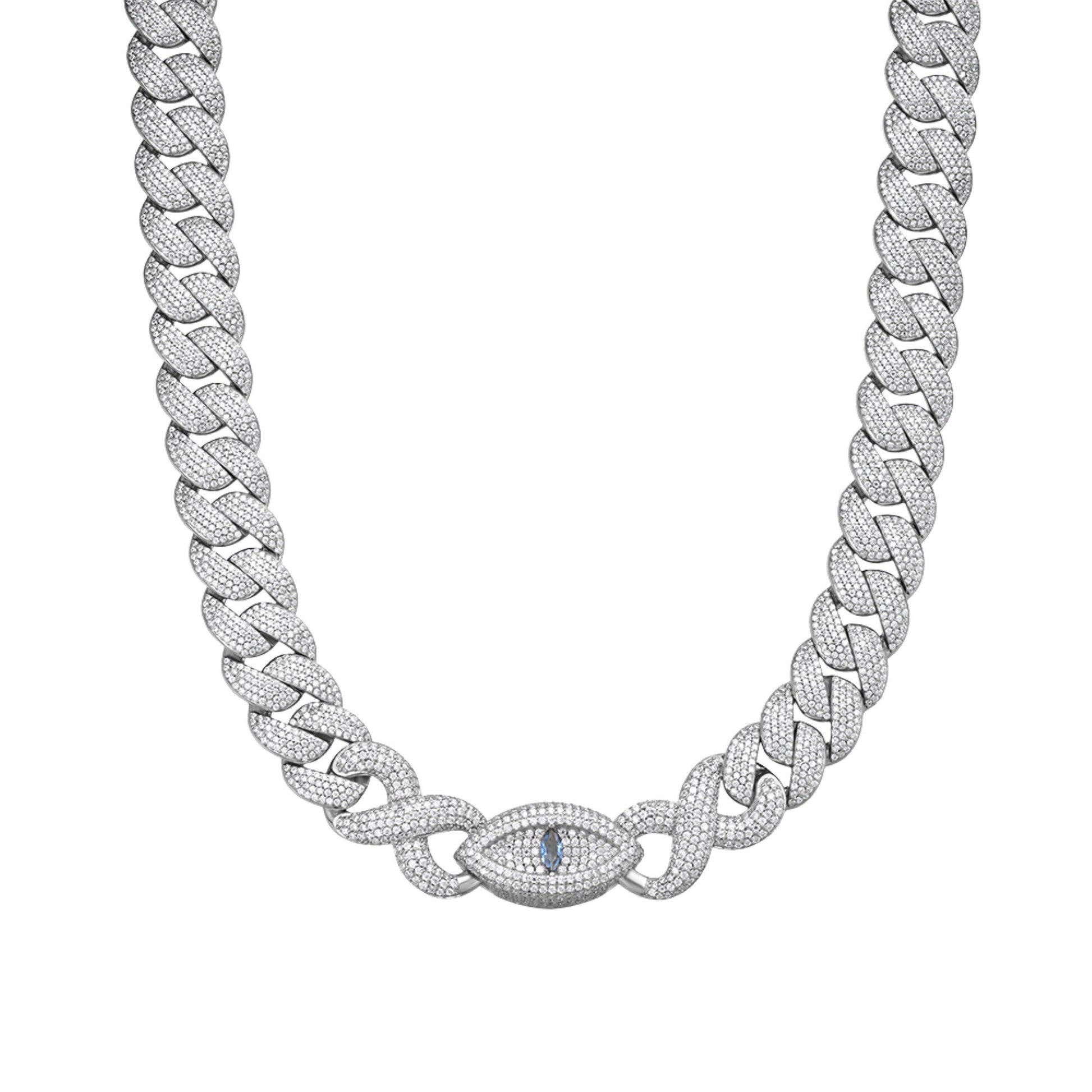 S.Silver Round Moissanite 18mm Inifinity Cuban With Evil Eye Designer 22 Inch Mens Necklace RP 35-3/4 Cttw
