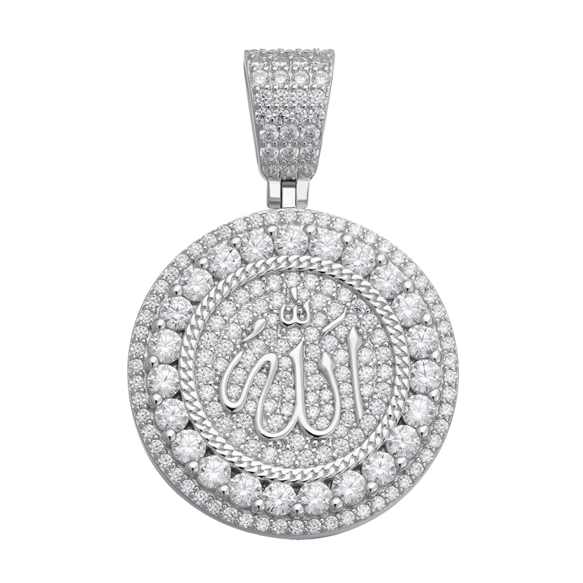 S.Silver 35mm Round Moissanite Muslim God Allah Religious Pendant RP 8 Cttw