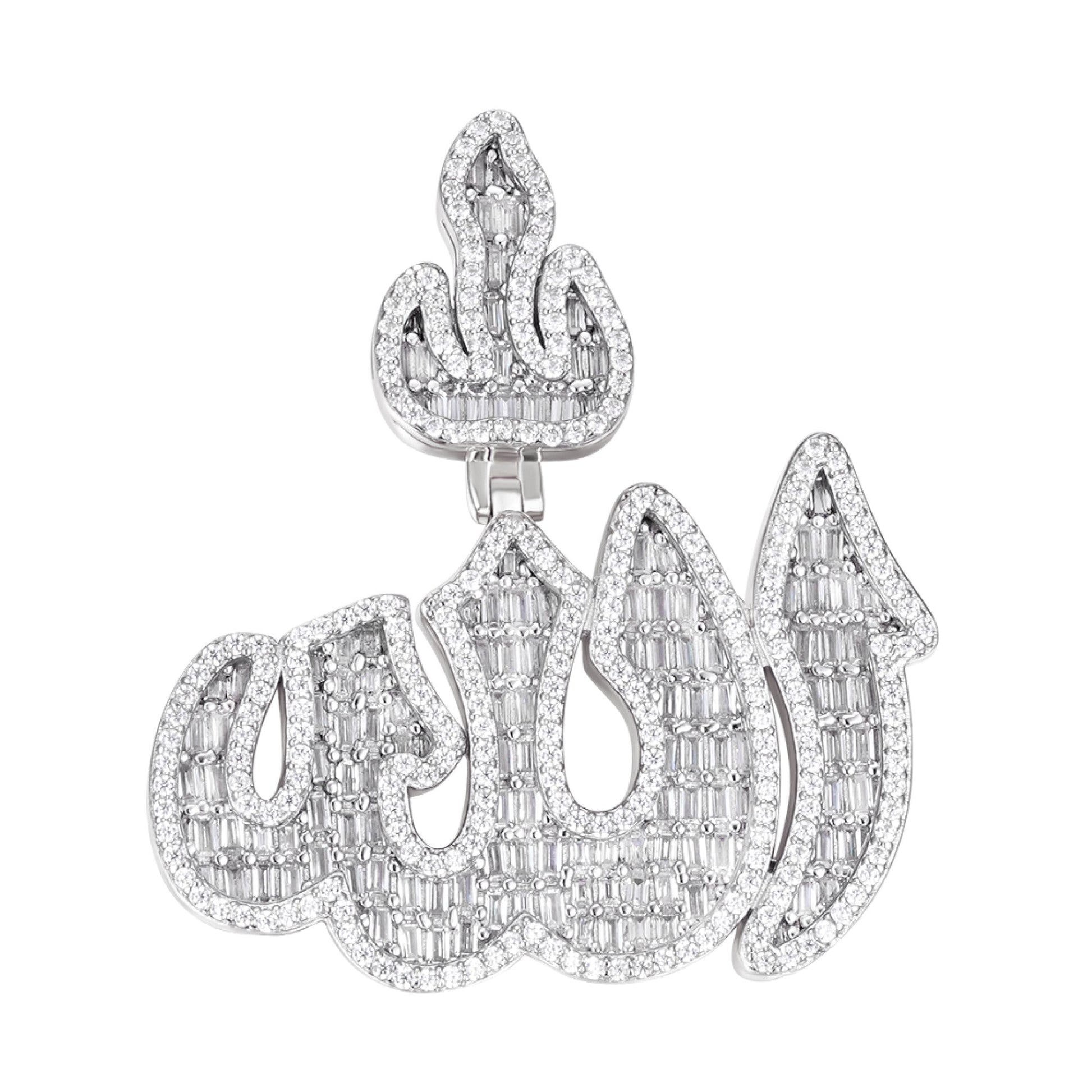 S.Silver Round Baguette Moissanite Muslim God Allah Religious Pendant RP 5-1/4 Cttw