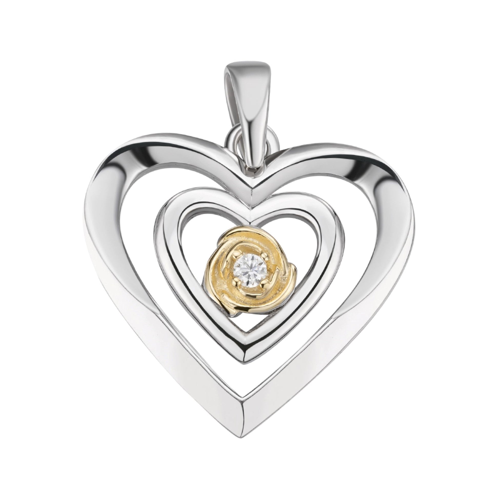 S.Silver Round Moissanite Solitaire Heart Designer Pendant RP+GP 1/10 Cttw
