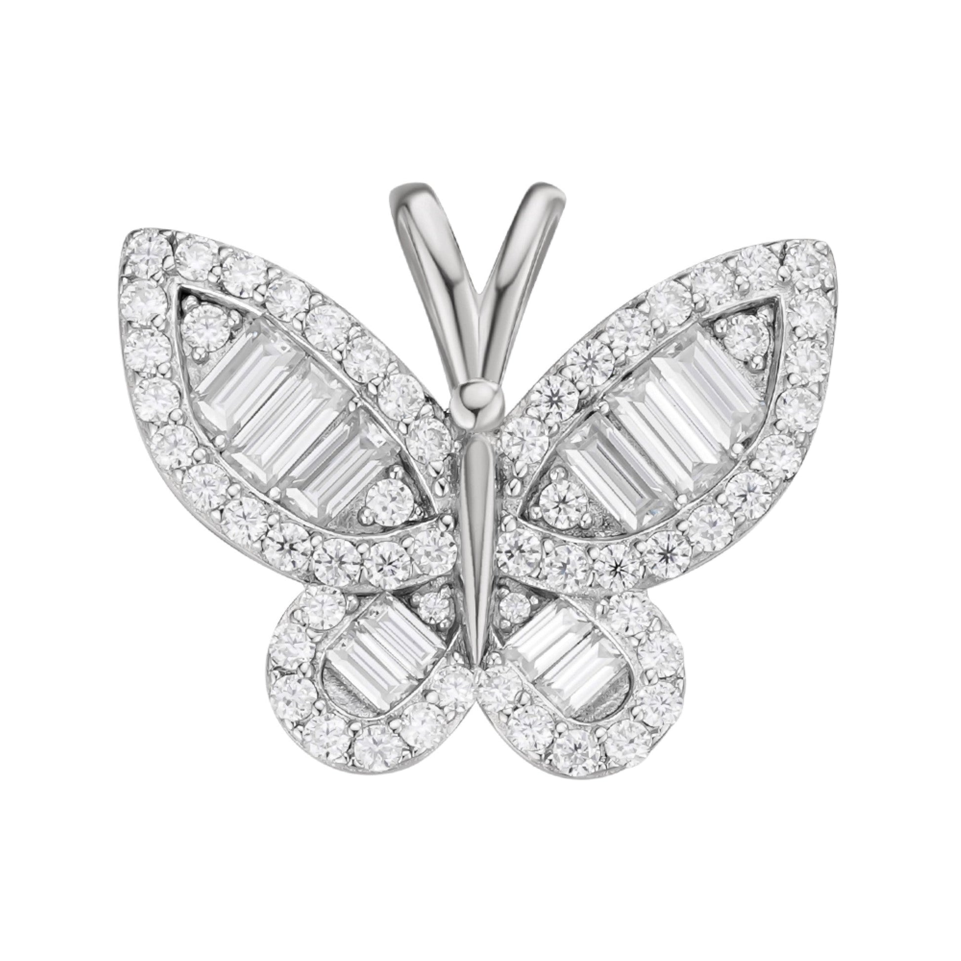 S.Silver Round Baguette Moissanite Butterfly Animal Pendant RP 1-7/8 Cttw