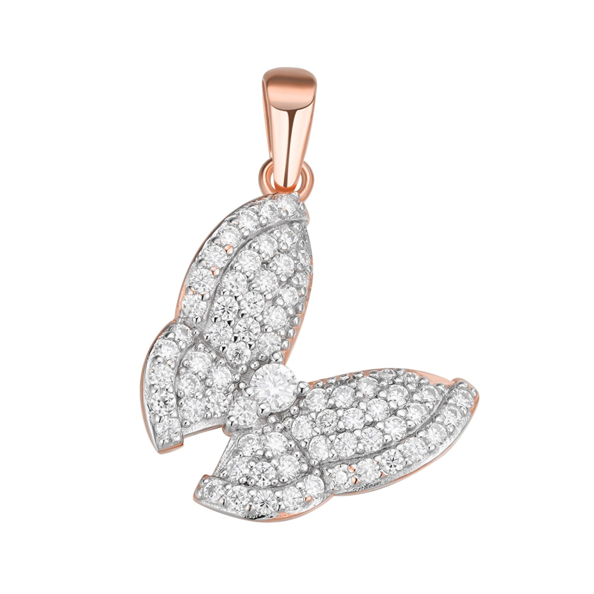 S.Silver Round Moissanite Butterfly Animal Pendant RP 3/4 Cttw