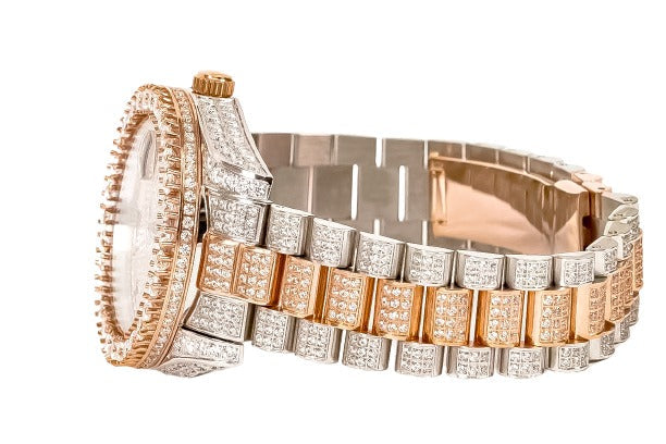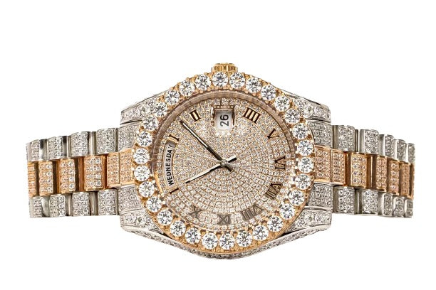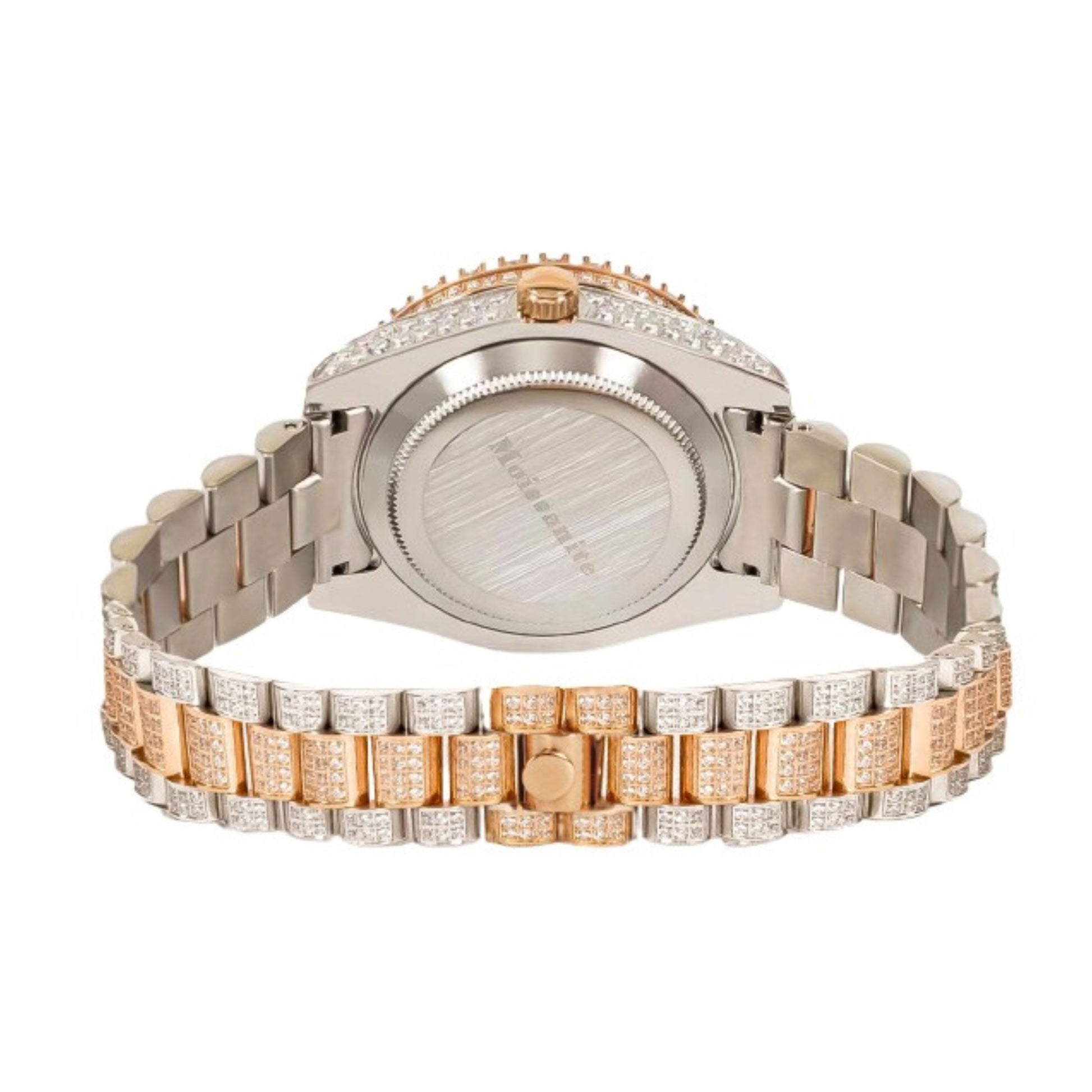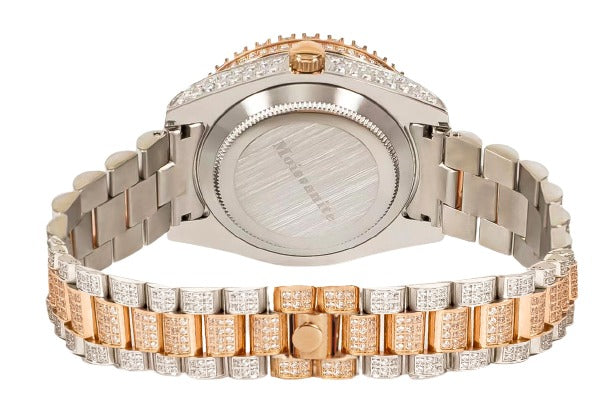 Moissanite Stainless Steel Rose Two Tone Band Mens Watch 17-1/3 Cttw