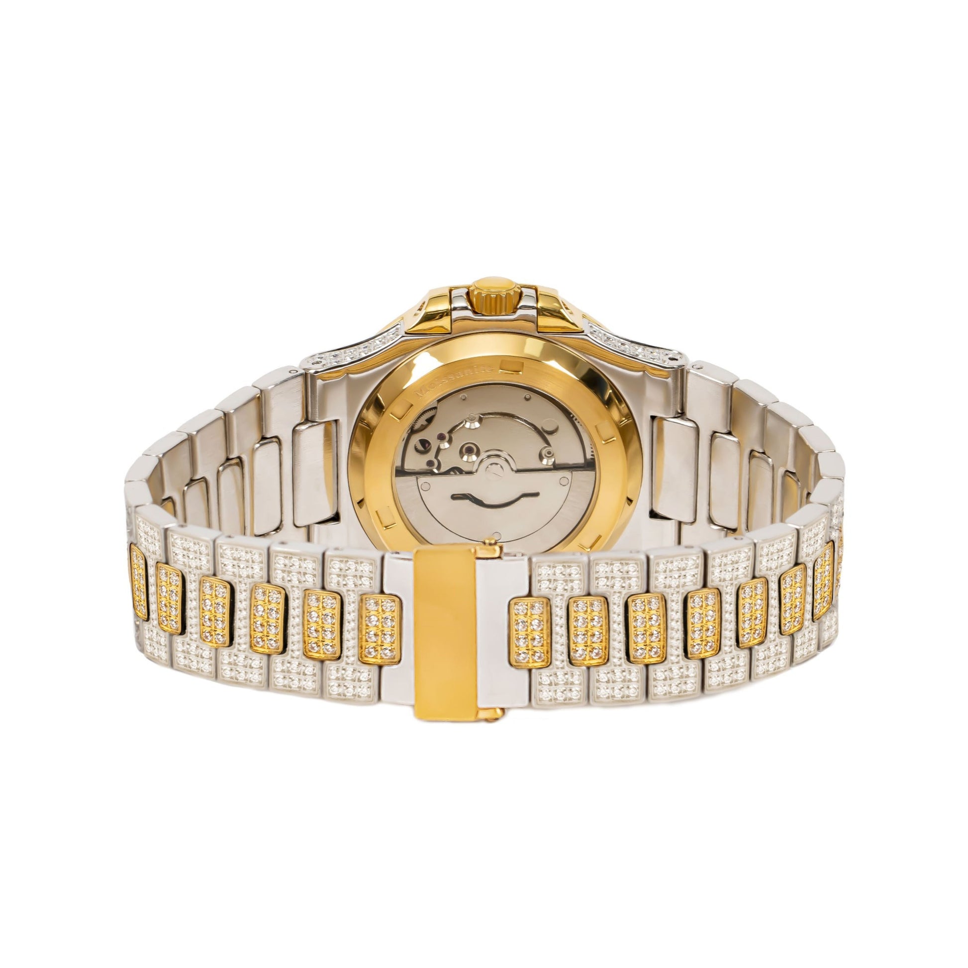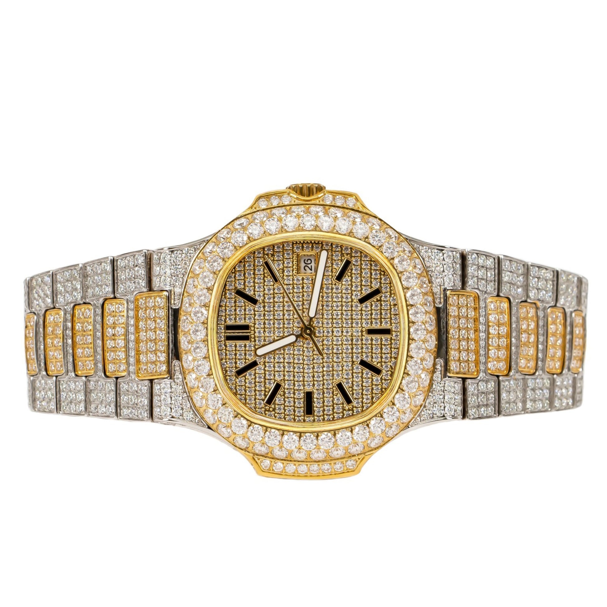 Moissanite Stainless Steel Yellow Two Tone Band Mens Watch 18-1/3 Cttw