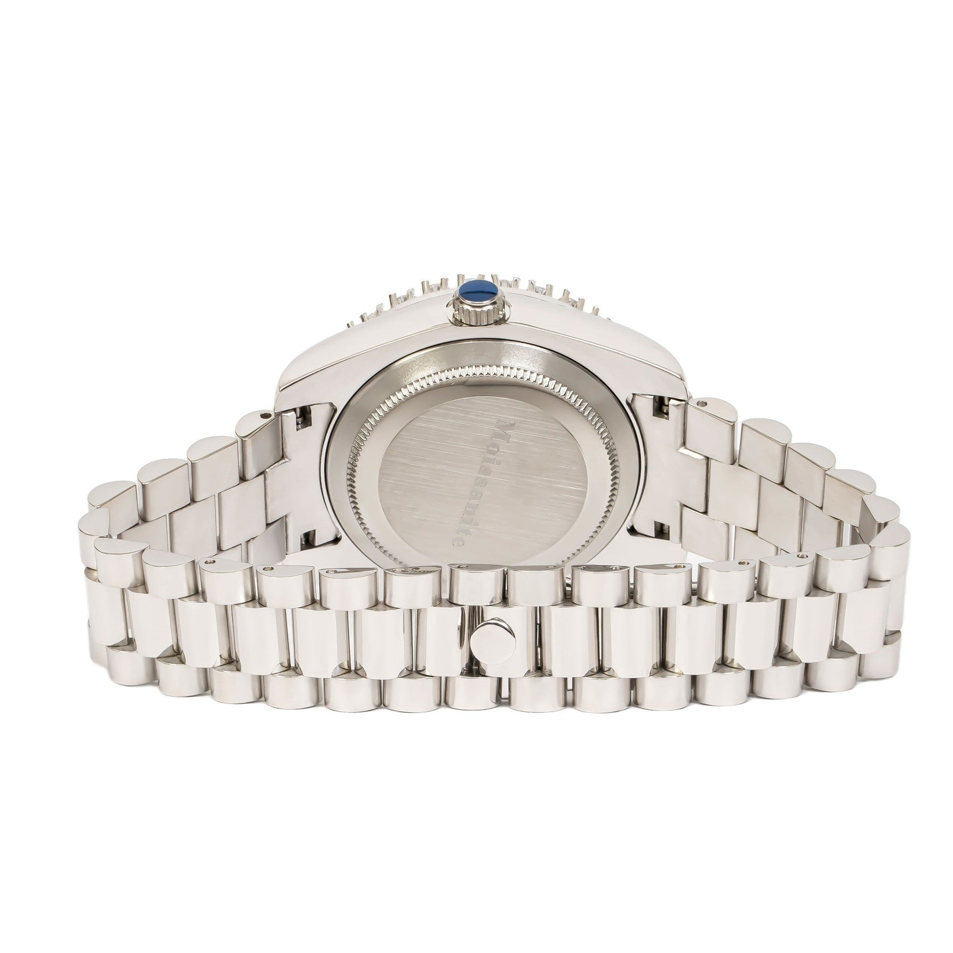 Moissanite Stainless Steel Silver Dial Mens White Steel Band Watch